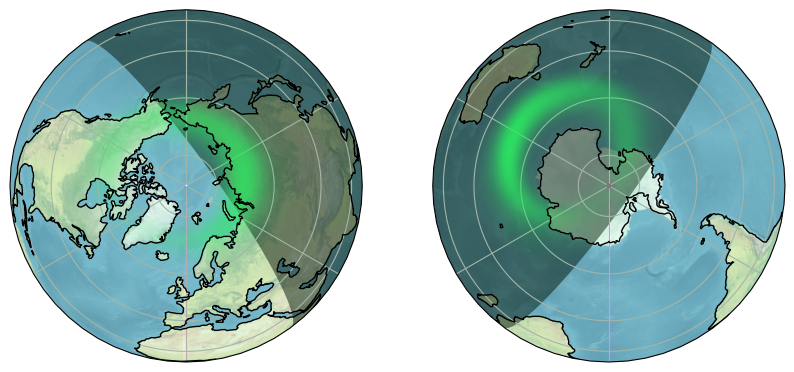 - 誌面のコードを実行してオーロラの予測情報をプロットできた